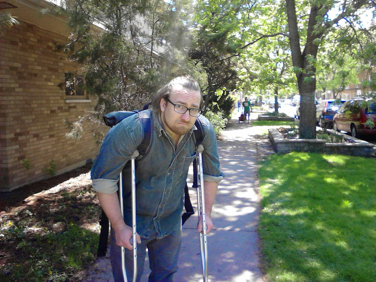 Nope, Logan wasn't injured...he likes to buy crunches to make video equipment...